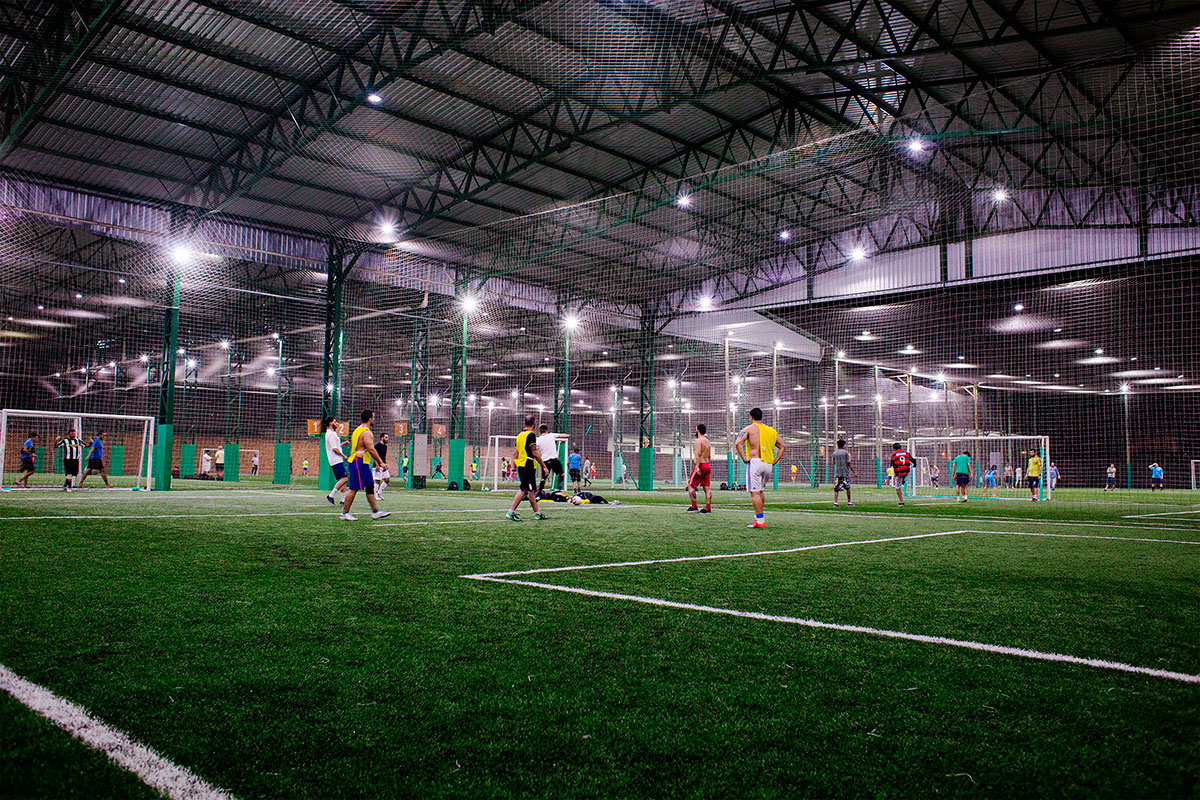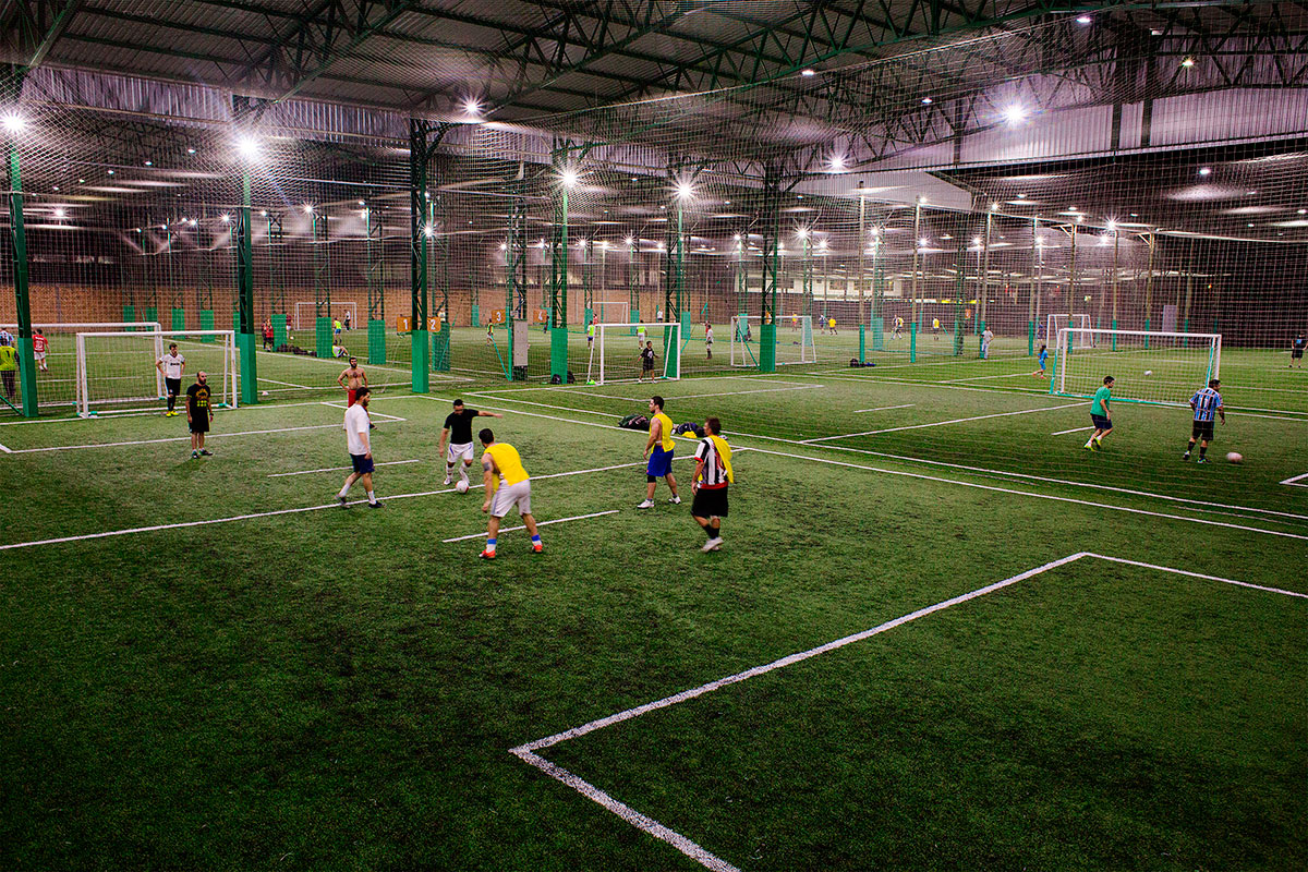 Contamos com duas quadras para futebol 5, com medidas de 17 m x 30 m, ambas cobertas. E mais quatro quadras oficiais de futebol 7, com medidas de 30 m x 50 m, sendo duas cobertas e duas descobertas. Todas as campos em grama sintética de tecnologia monofilada padrão FIFA, proporcionando menos impacto e maior maciez, reproduzindo com muita semelhança um gramado natural. A Iluminação em LED segue as tendências mais modernas.